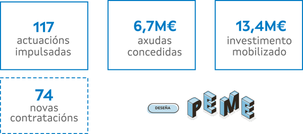 Dende a súa posta en marcha no 2021, DeseñaPeme está a permitir o desenvolvemento de 117 proxectos cun investimento público de 6,7M€, o que supón unha mobilización total de 13,4M€.