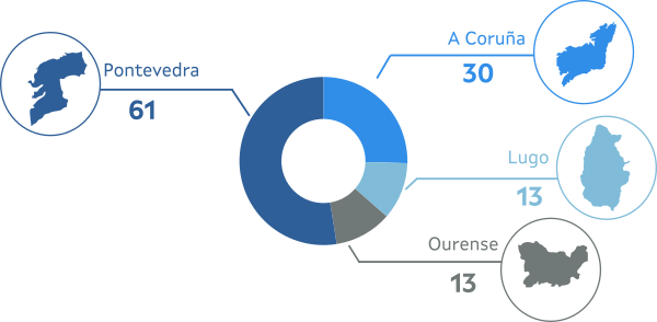 Por provincias, Pontevedra é a máis dinámica, con máis da metade das empresas beneficiarias (61), seguida por A Coruña (30) e por Lugo e Ourense (con 13 pemes participantes en cada unha).