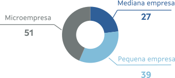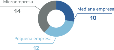 Por tamaño da empresa, 14 son micropemes, 12 pequenas empresas e 10 medianas.