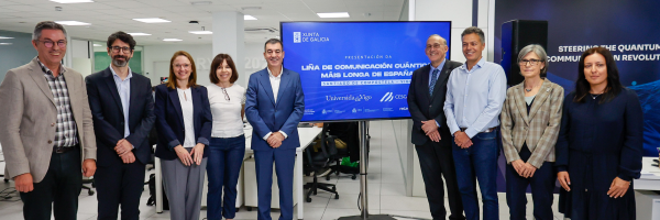 | A I+D+i galega viviu hoxe un novo fito coa posta en funcionamento da liña de comunicación cuántica terrestre máis longa de España e tamén unha das maiores de toda Europa: 120 quilómetros que unen a partir de agora Santiago de Compostela e Vigo. A nova infraestrutura despregada, desenvolta por investigadores do CESGA co asesoramento do Vigo Quantum Communication Center, facilitará establecer comunicacións ultraseguras. Entre as aplicacións desta tecnoloxía atópanse a protección de infraestruturas críticas, comunicacións gubernamentais, control de tráfico aéreo, seguridade de transaccións bancarias e datos de saúde da cidadanía.